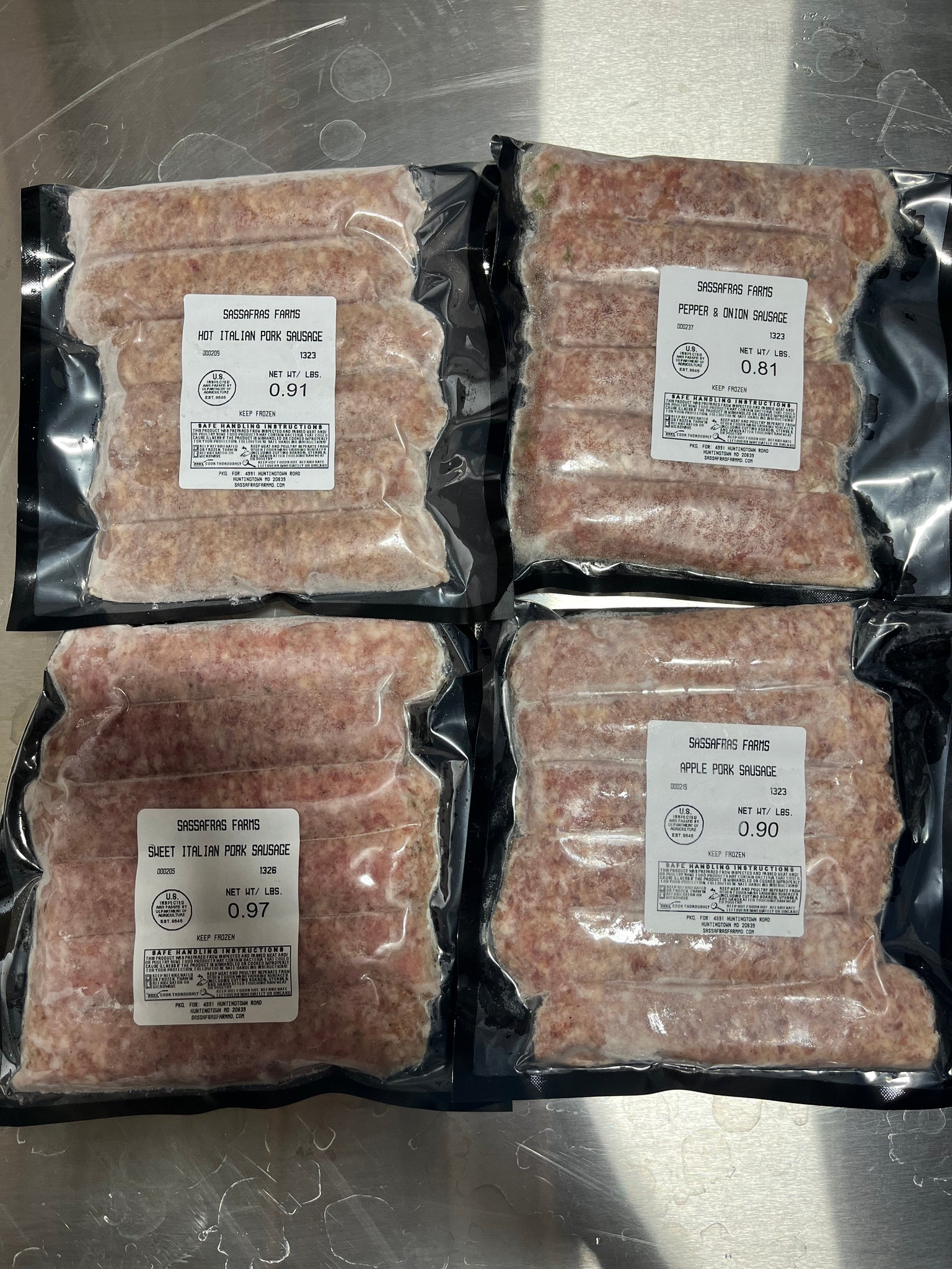 5-6 sausage links. All pork is frozen for safety and convenience.
